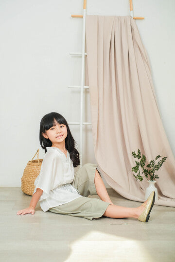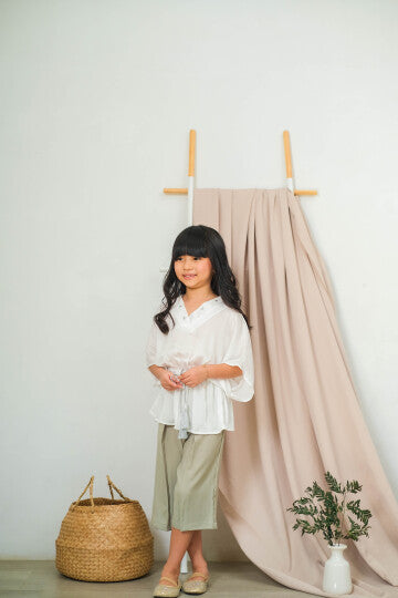 - celana panjang 7/8 berwarna broken white dan hijau matcha