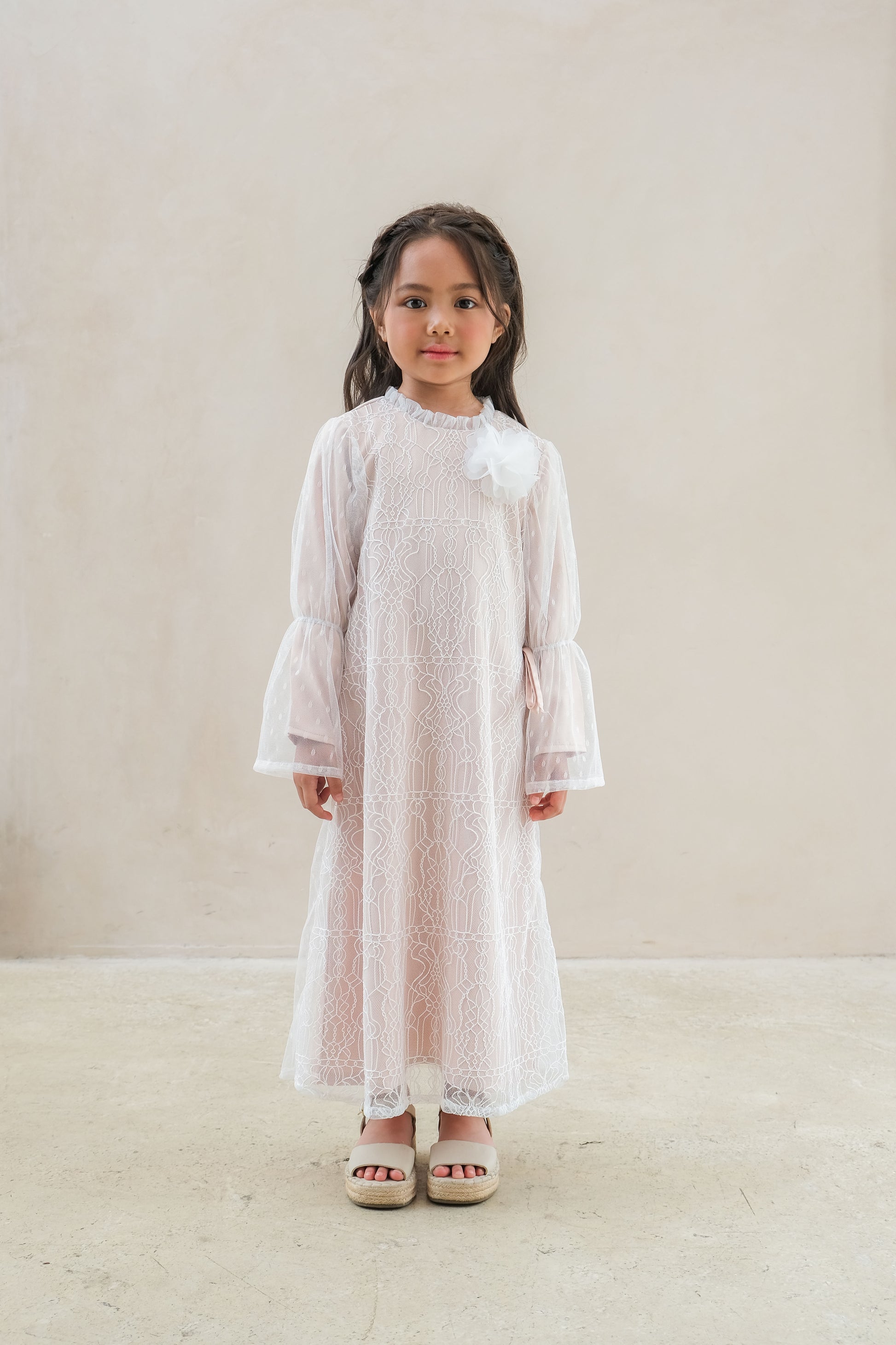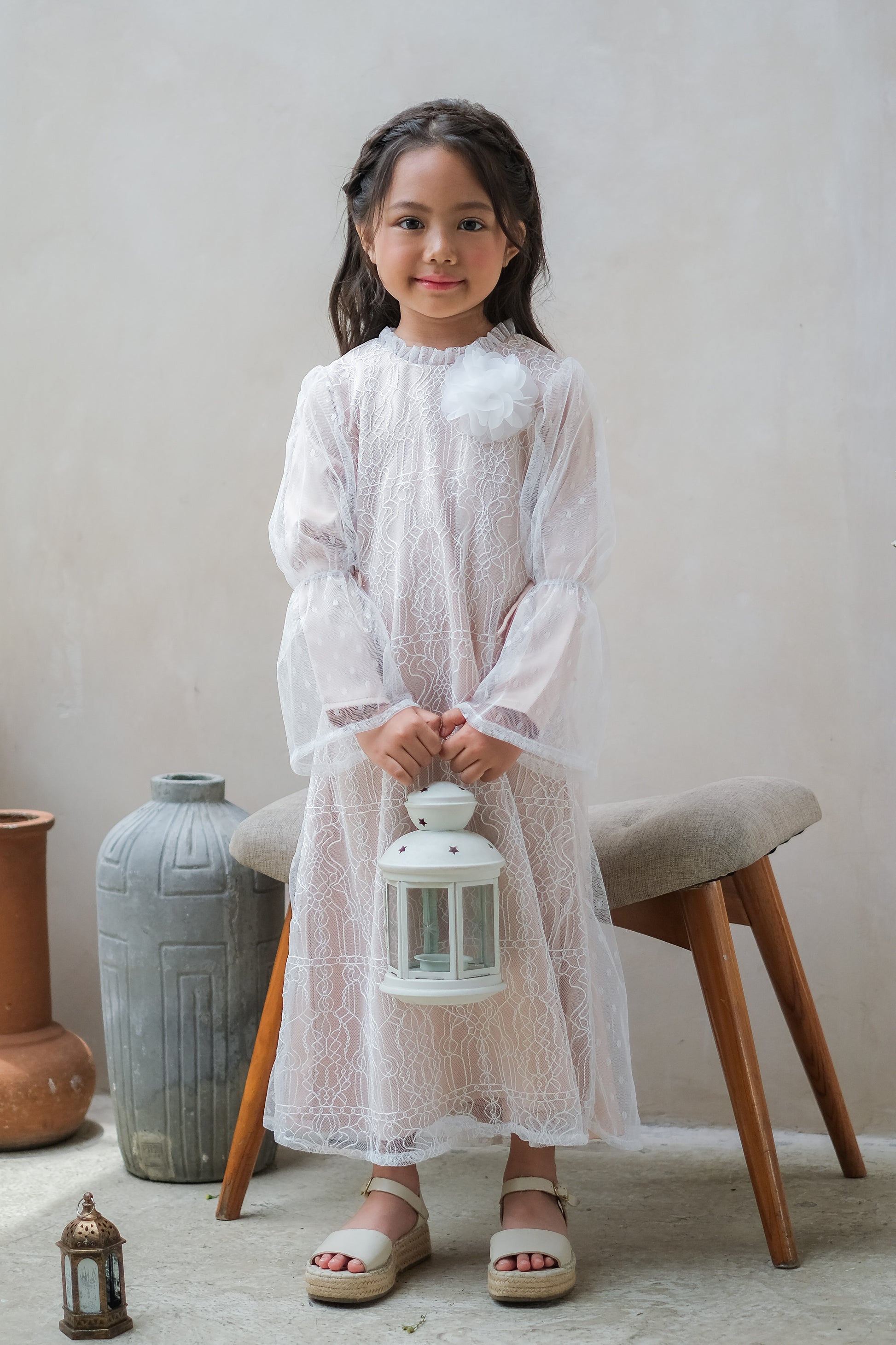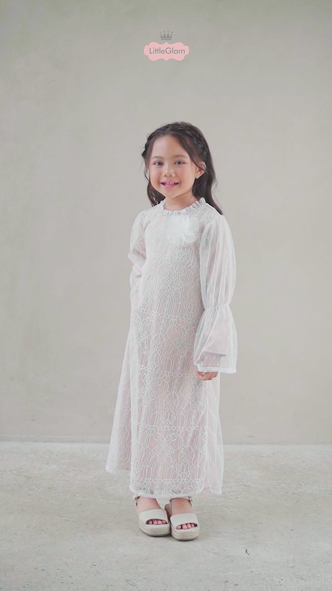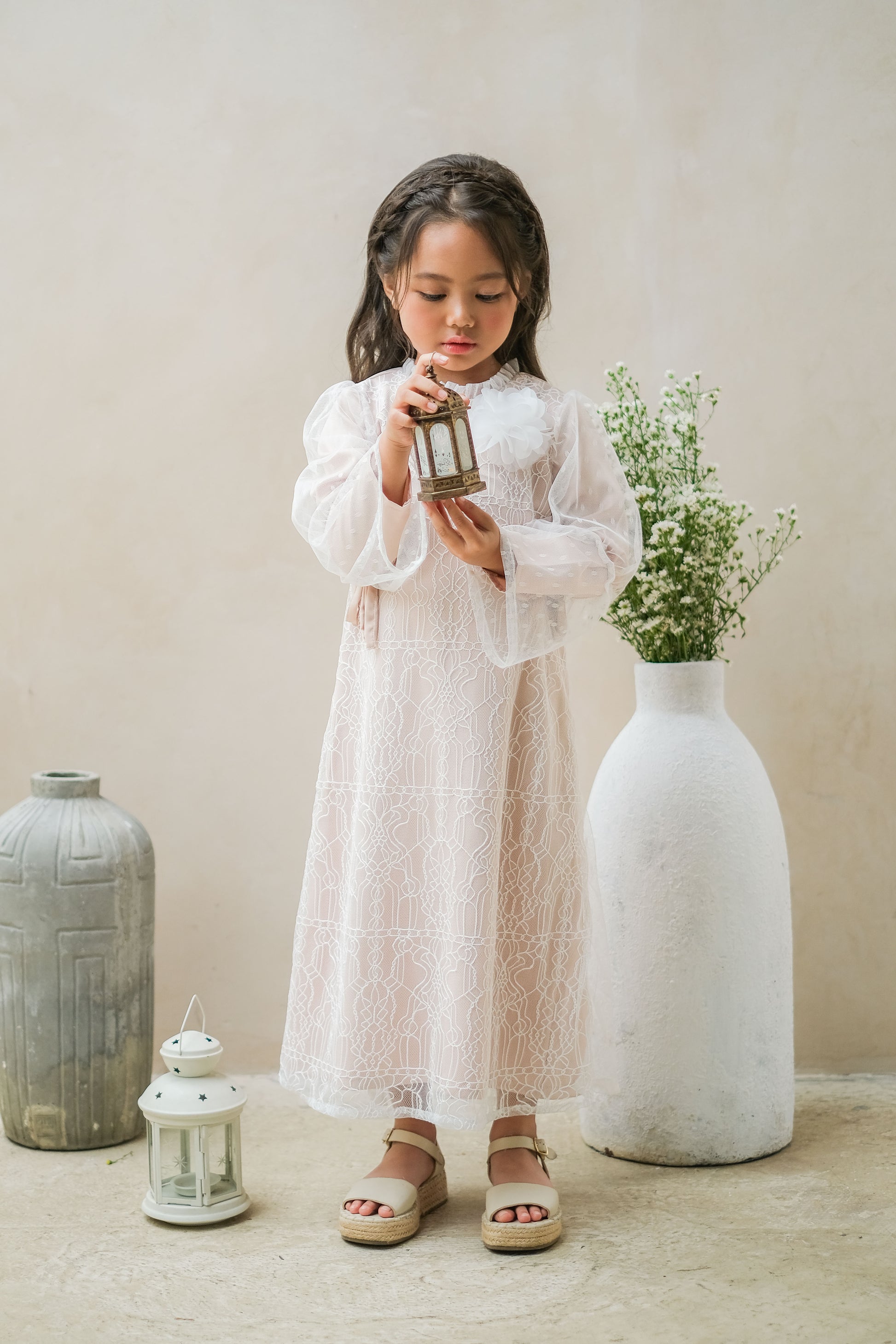 - dress muslim anak perempuan perpaduan warna gold dan white
