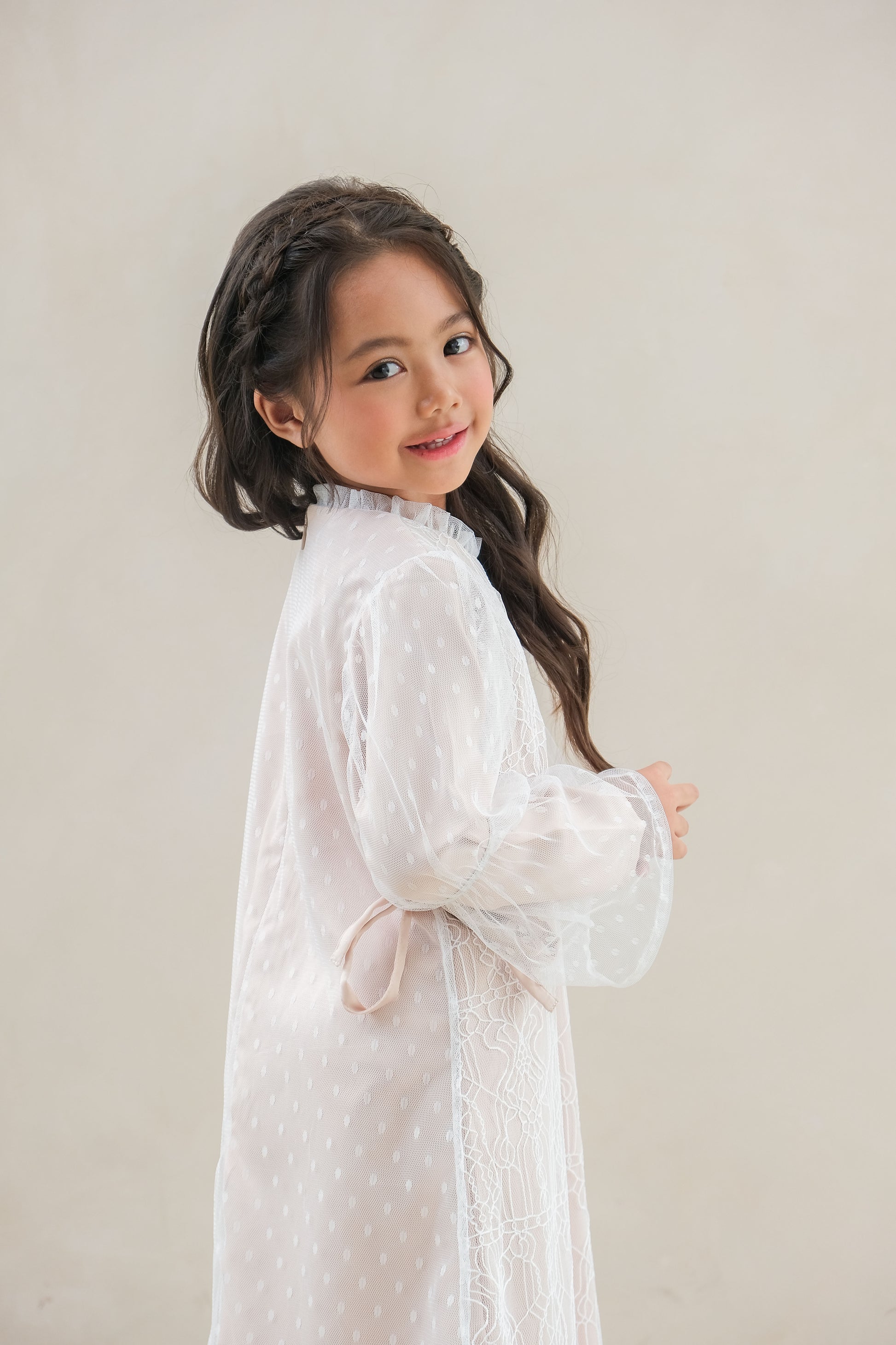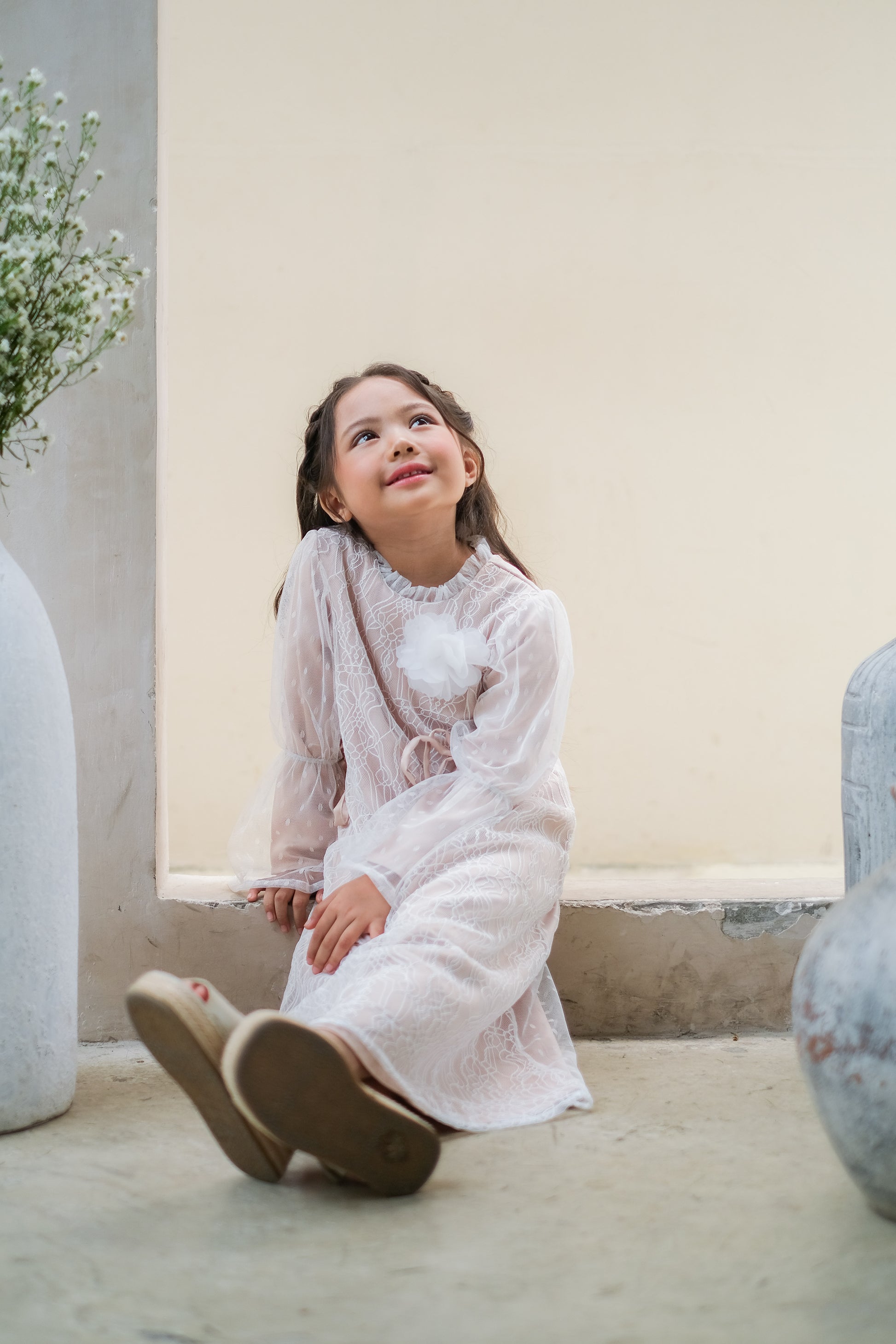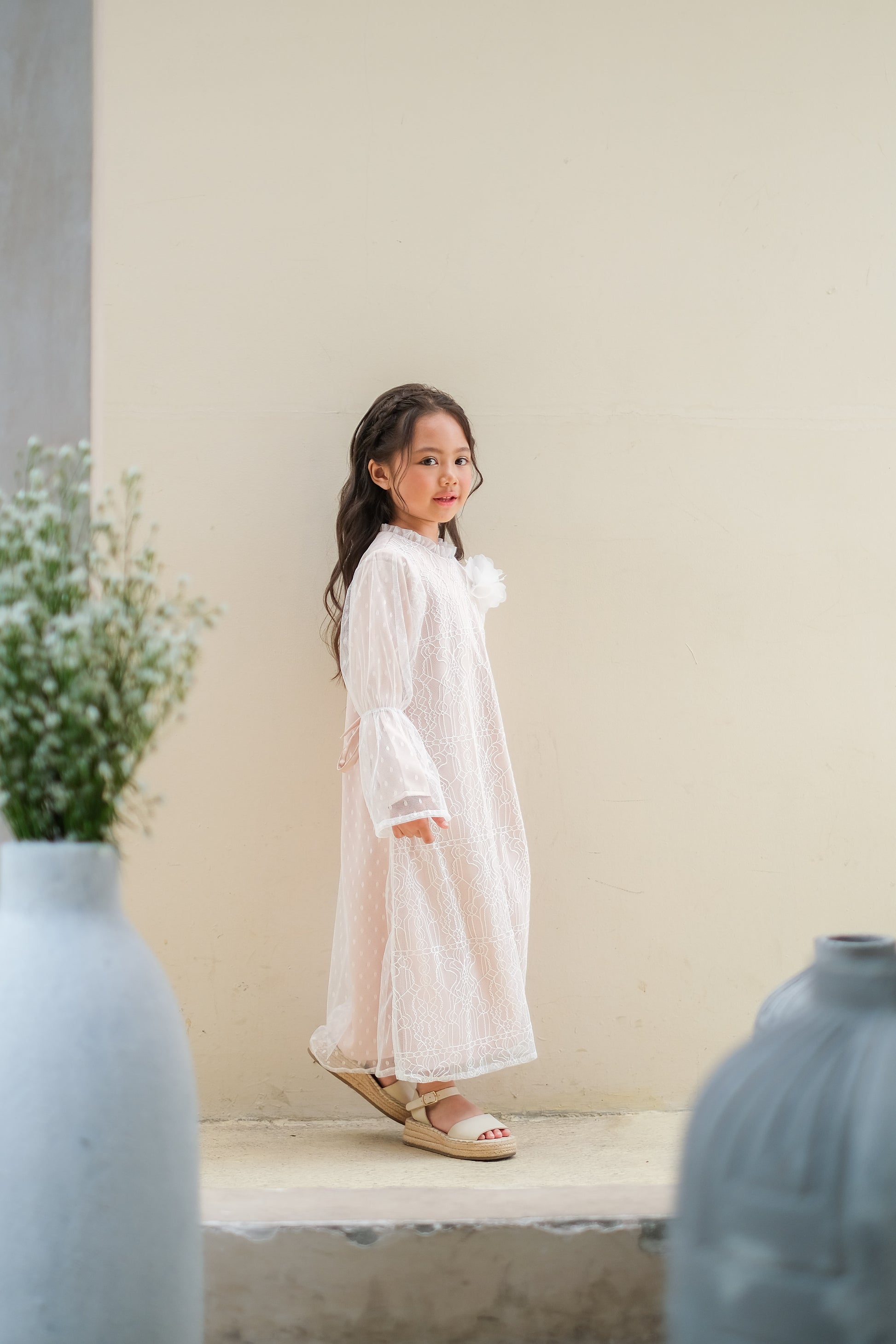 - dress muslim anak perempuan perpaduan warna gold dan white