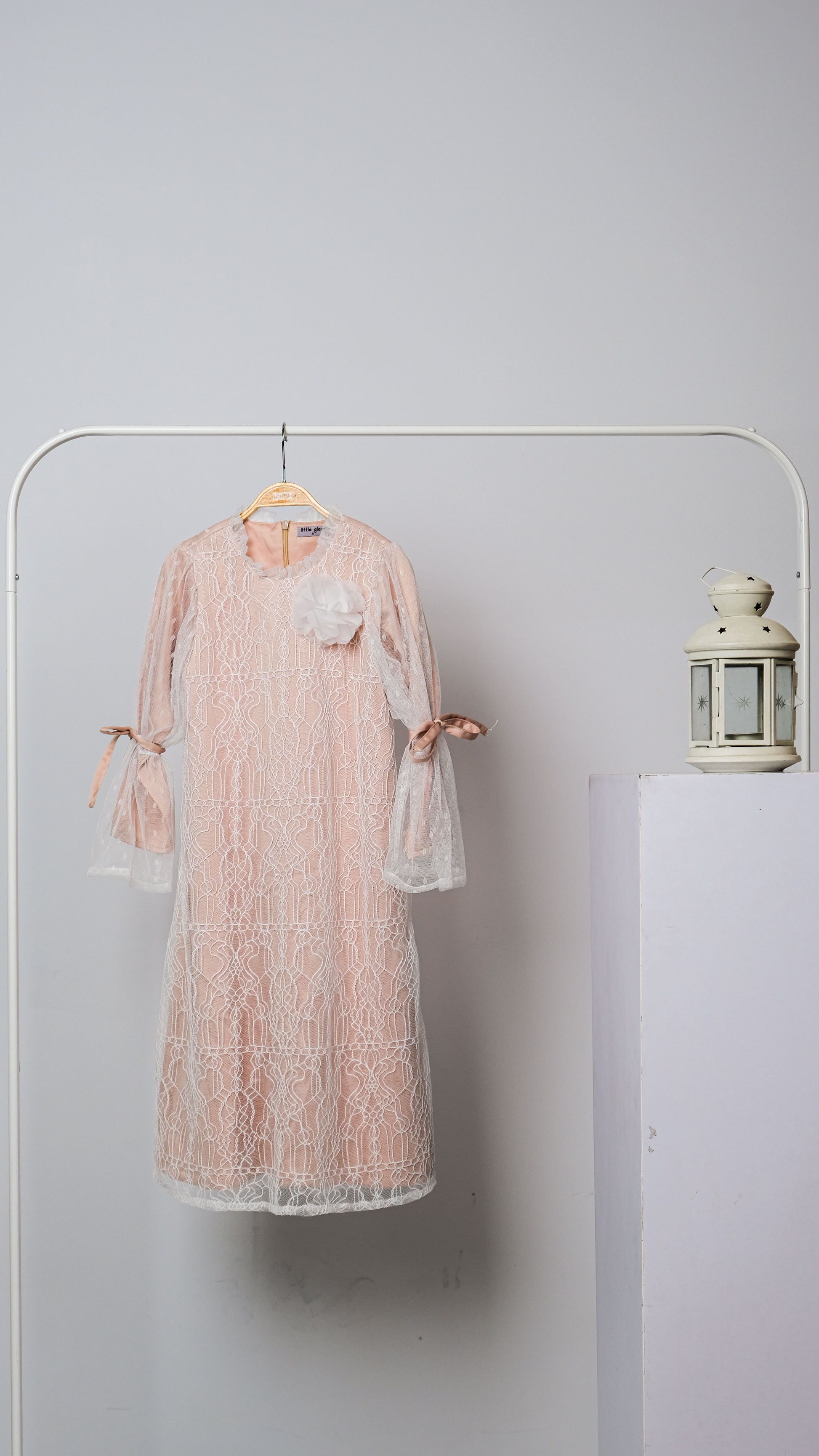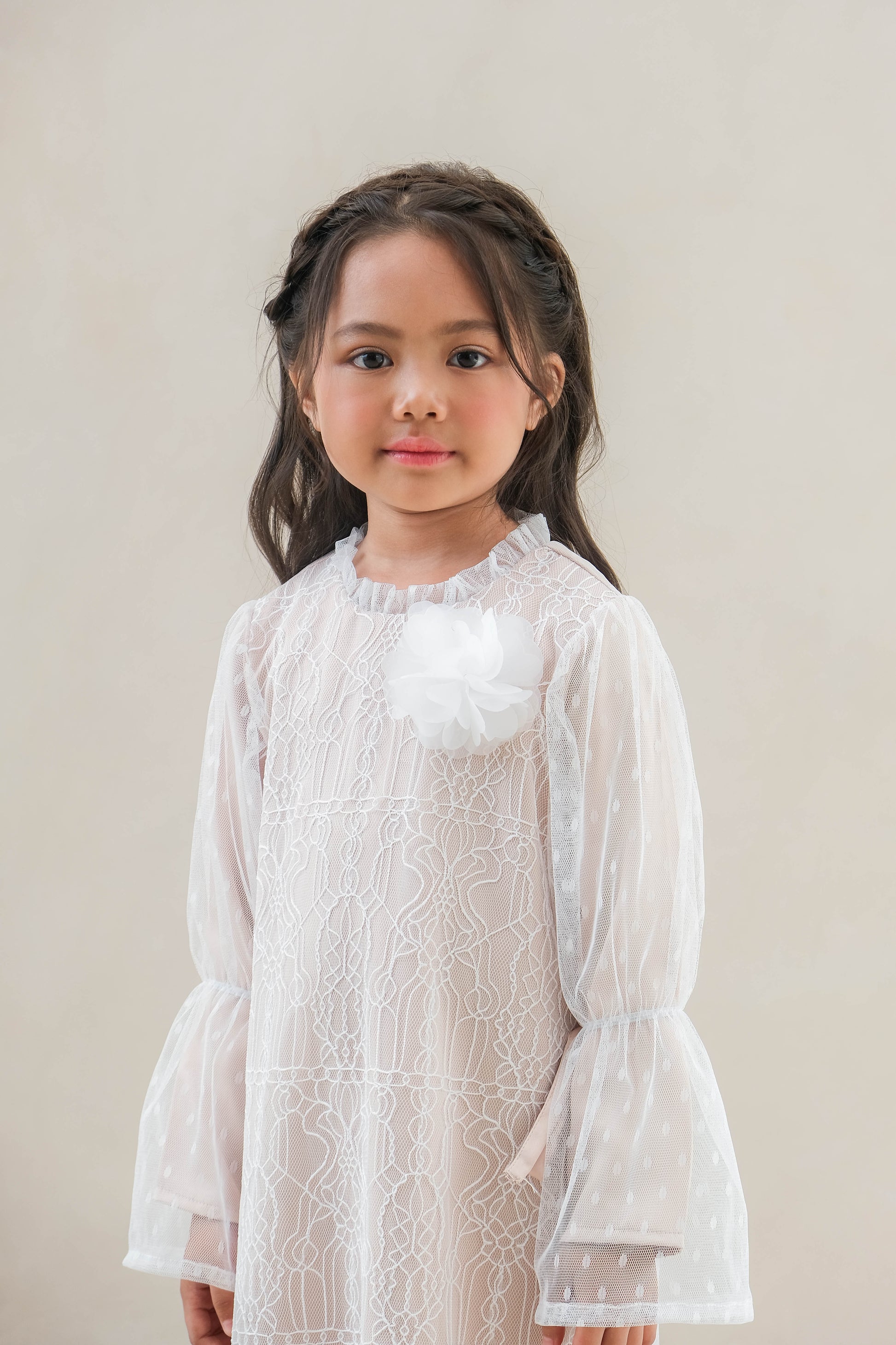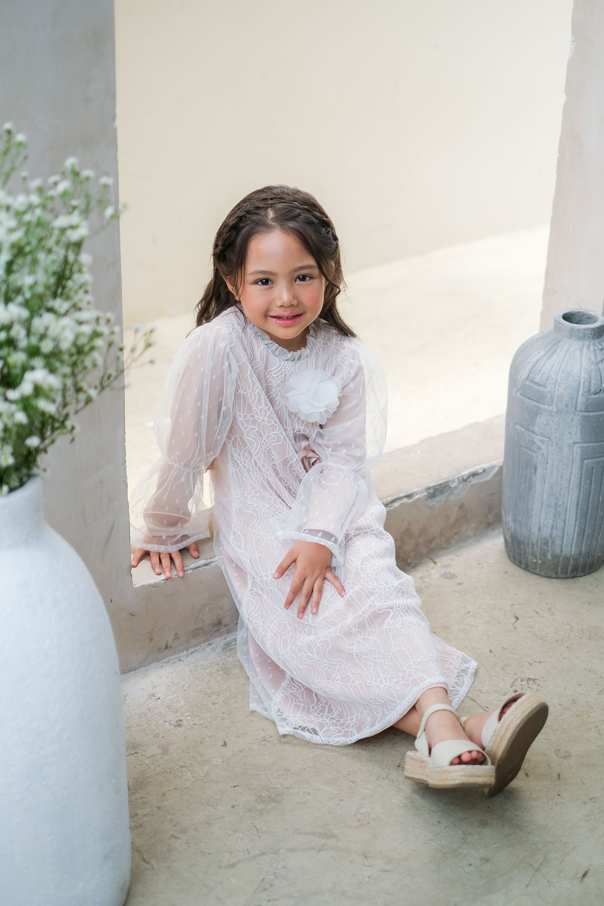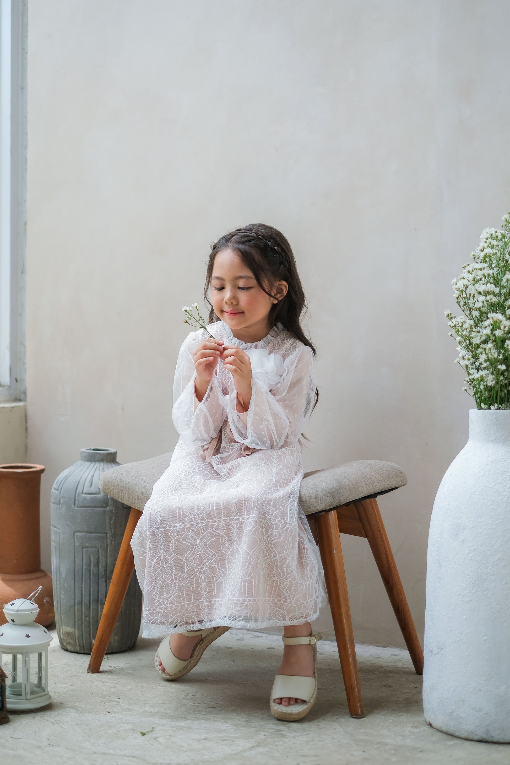 - dress muslim anak perempuan perpaduan warna gold dan white