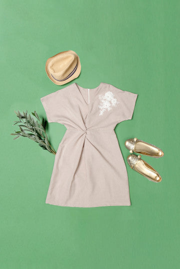 TUNIK cantik dengan panjang dibawah lutut, berwarna khaky dengan bahan linen yang nyaman digunakan
