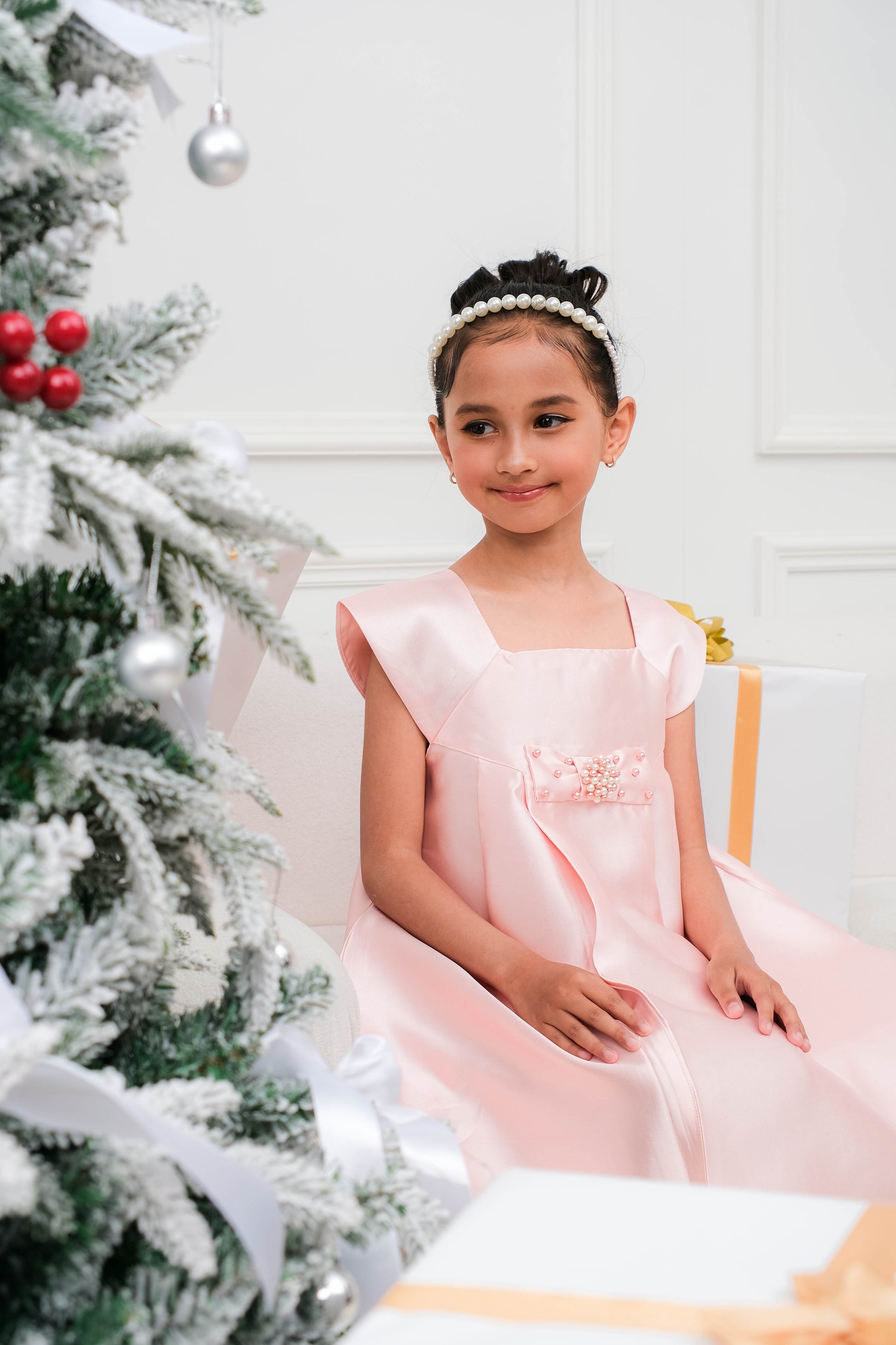 - Terdapat pita yang dihiasi mutiara memberi kesan glamour