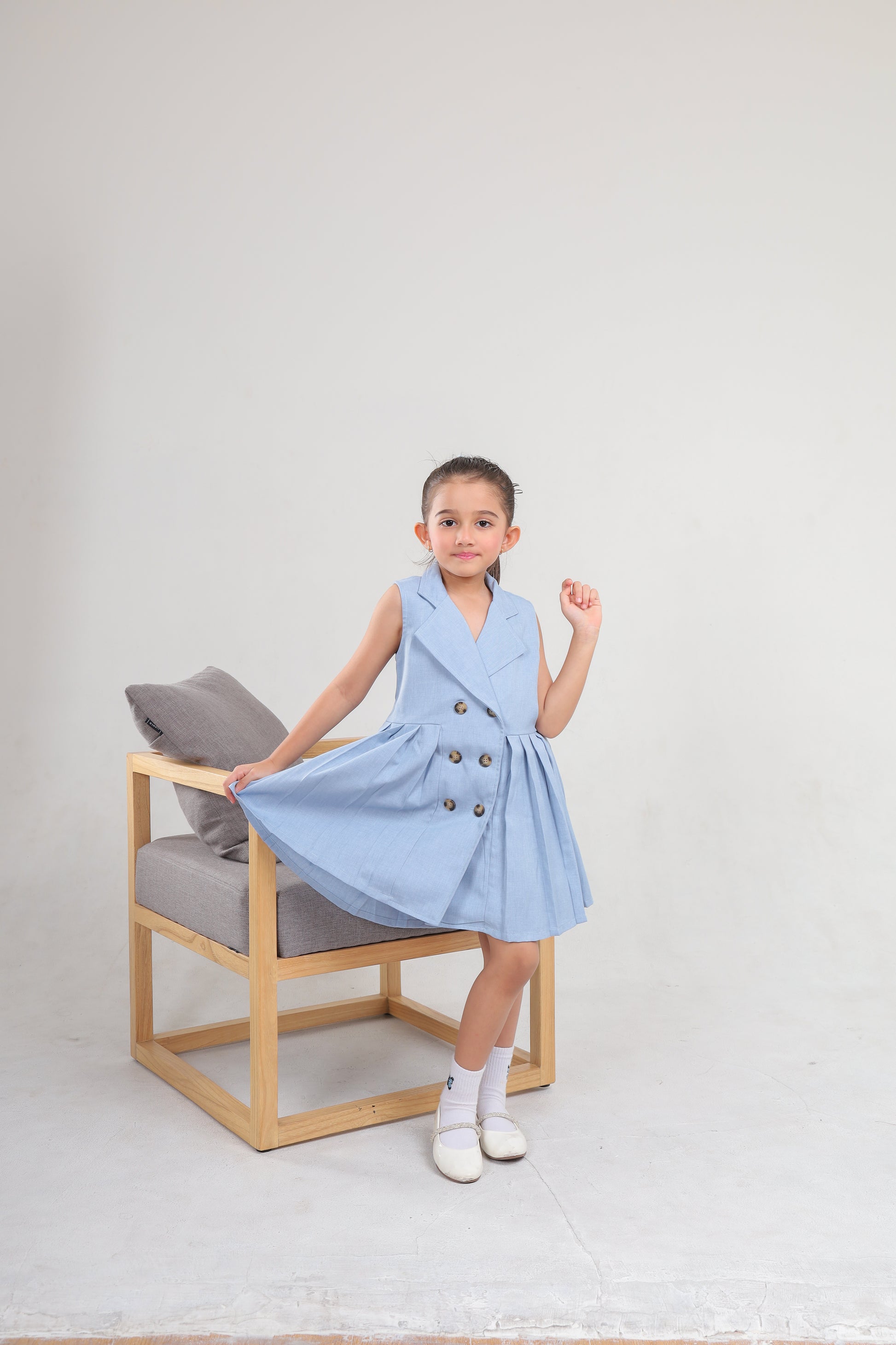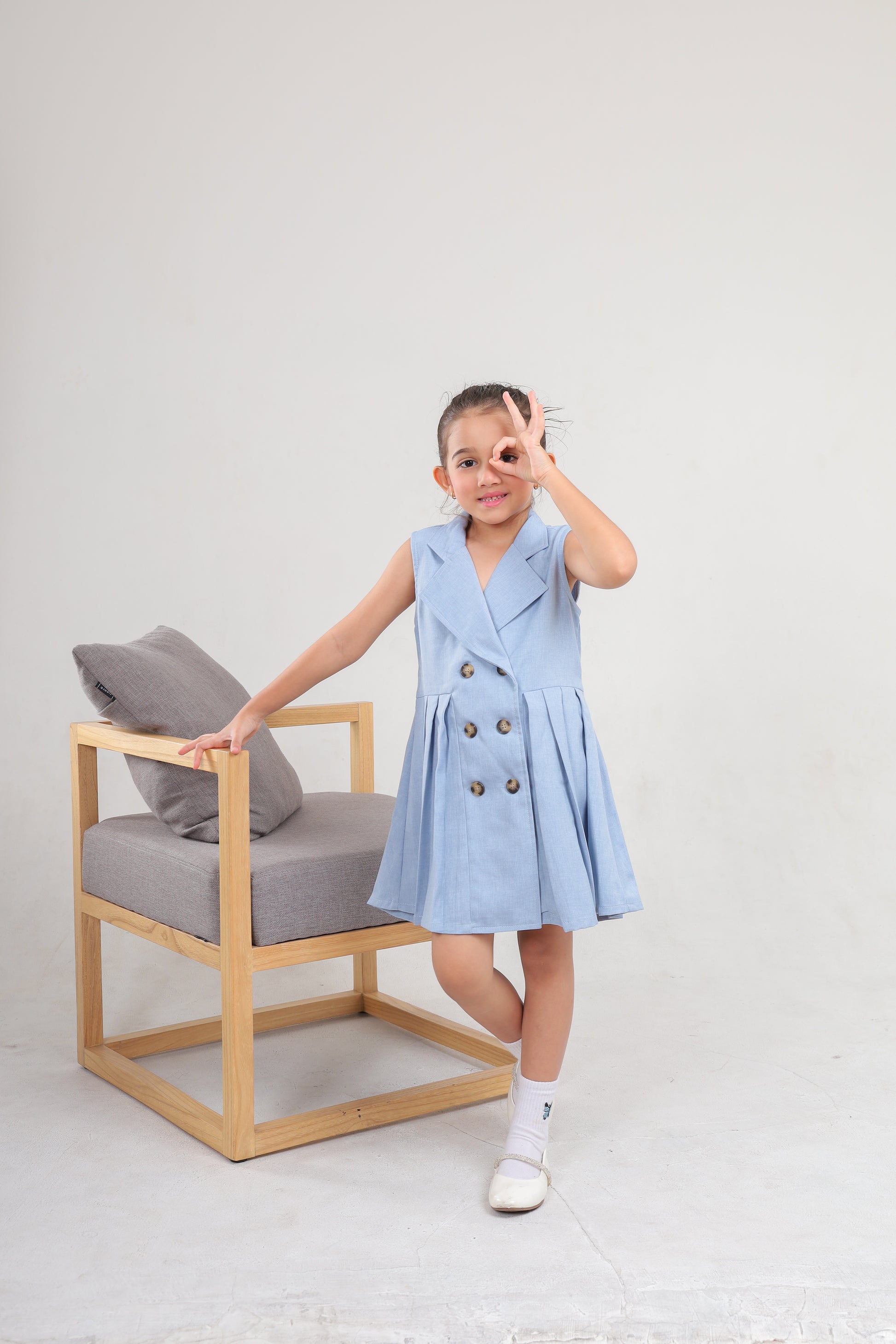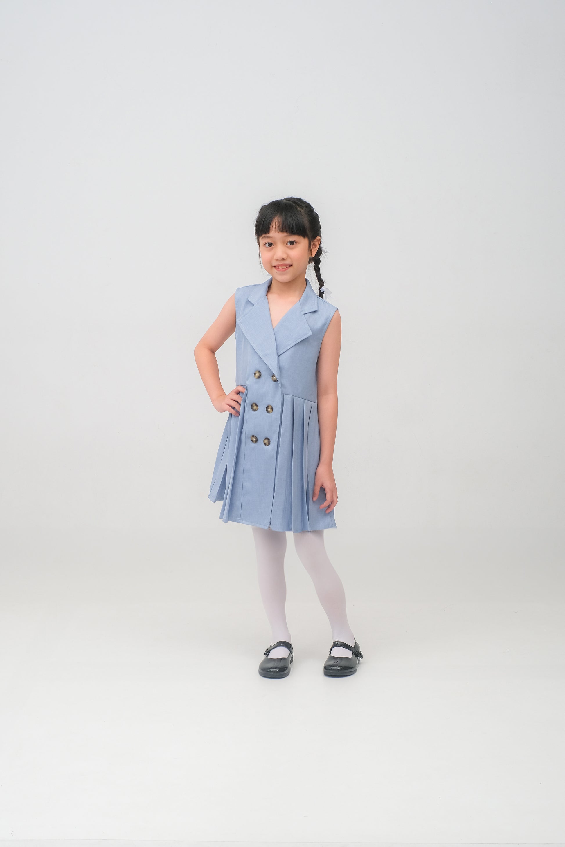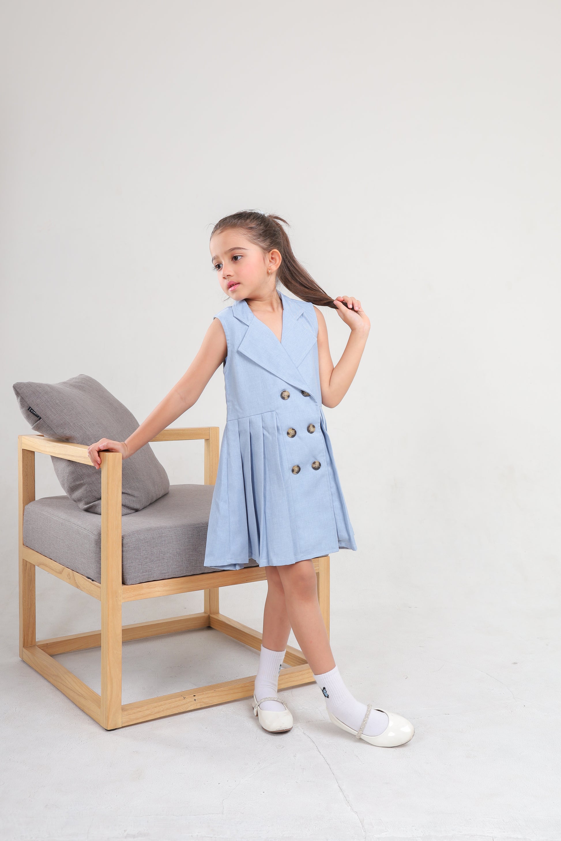 - Dress berwarna sky blue berbahan soft denin yang nyaman digunakan