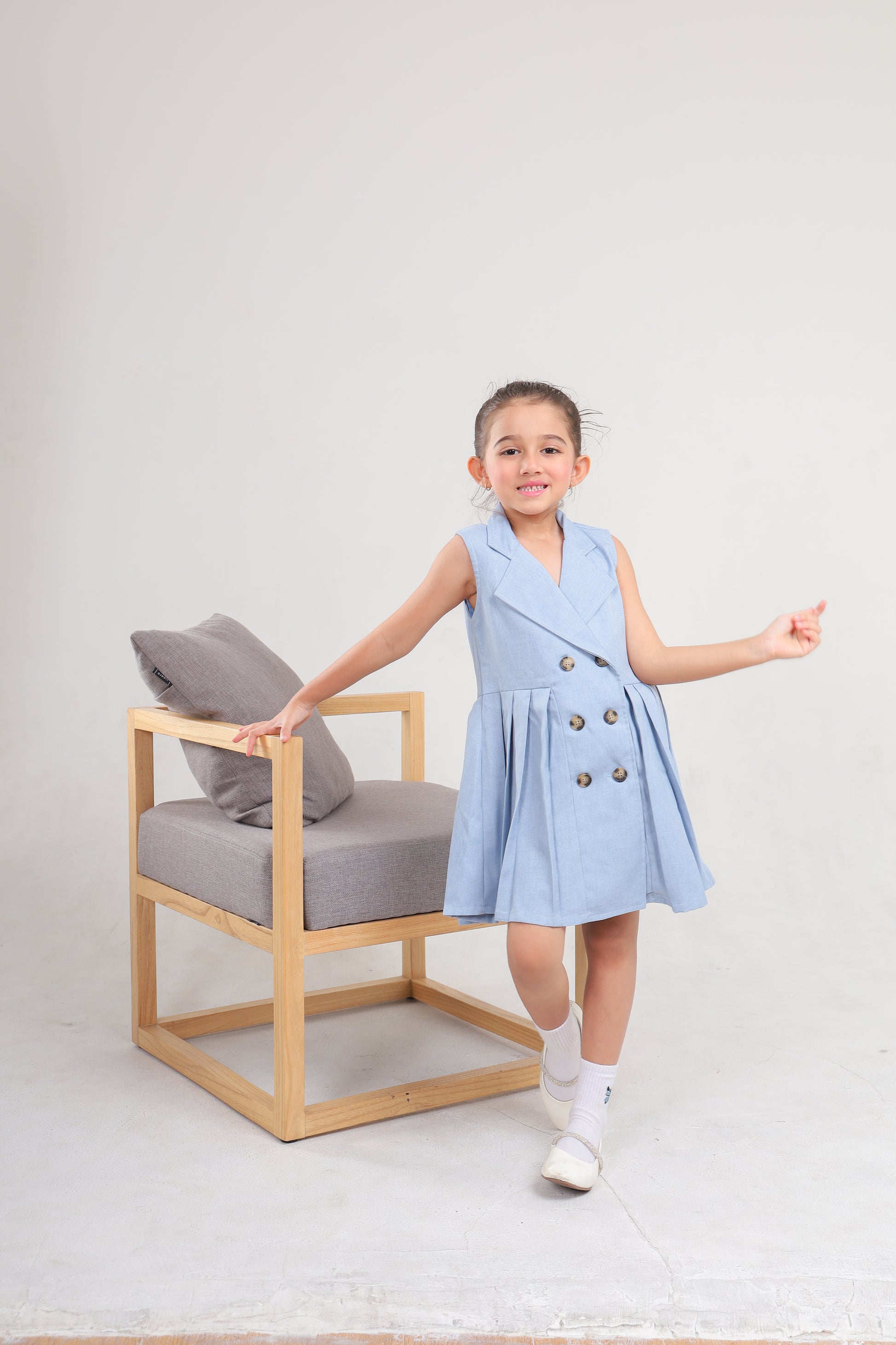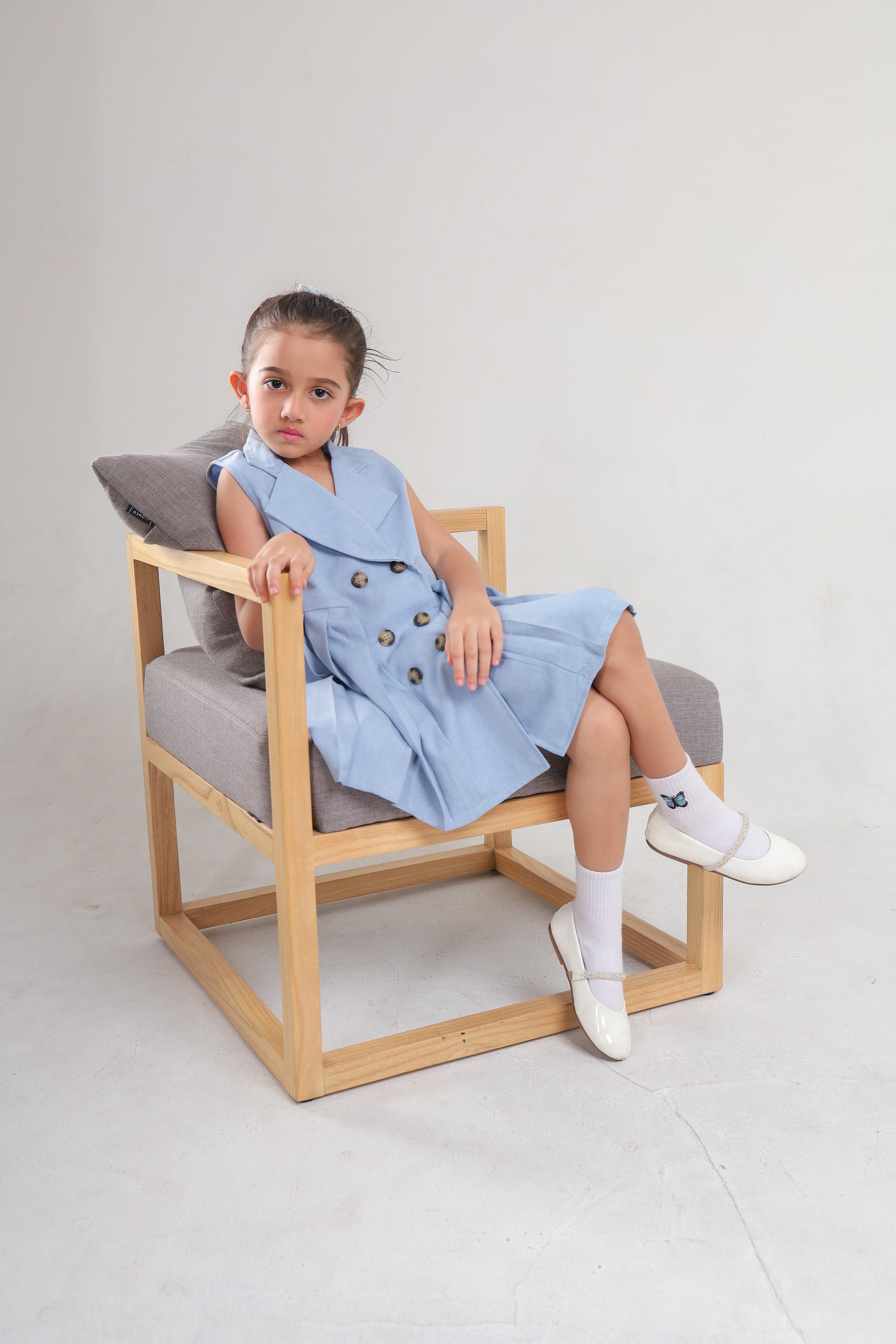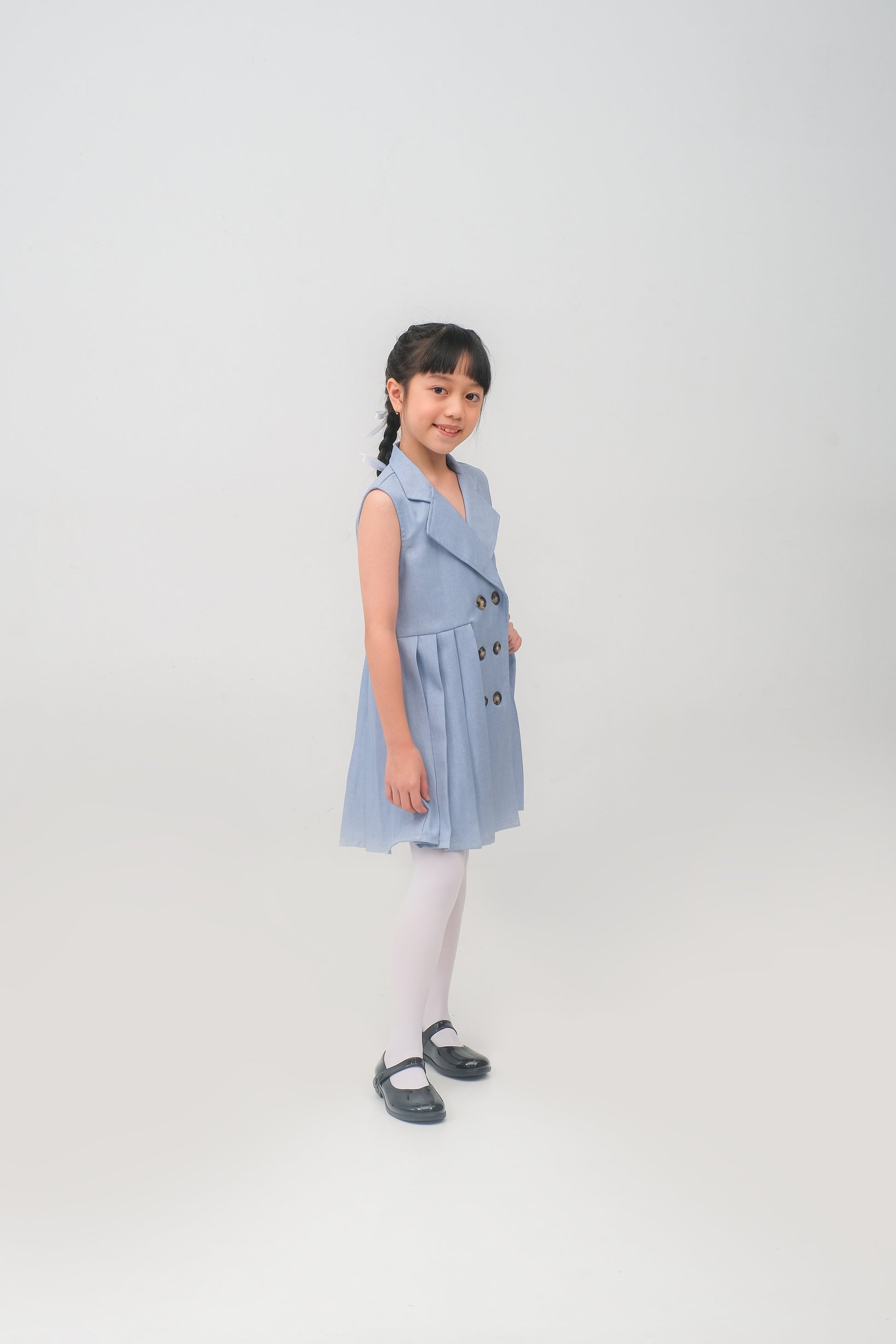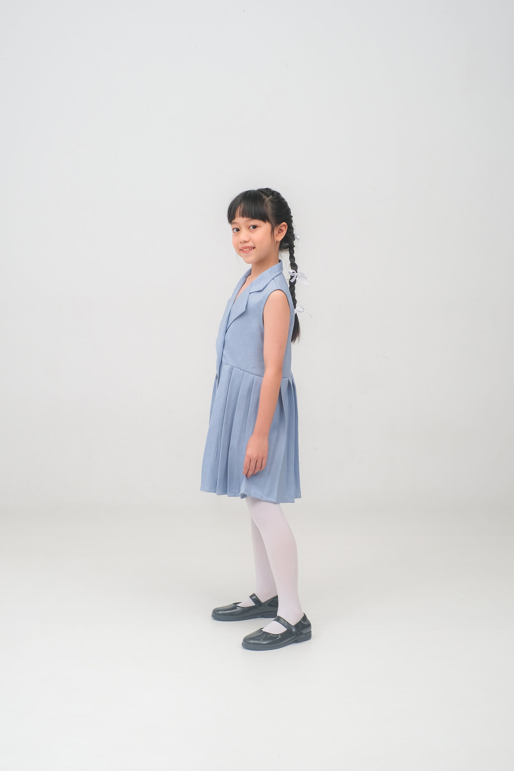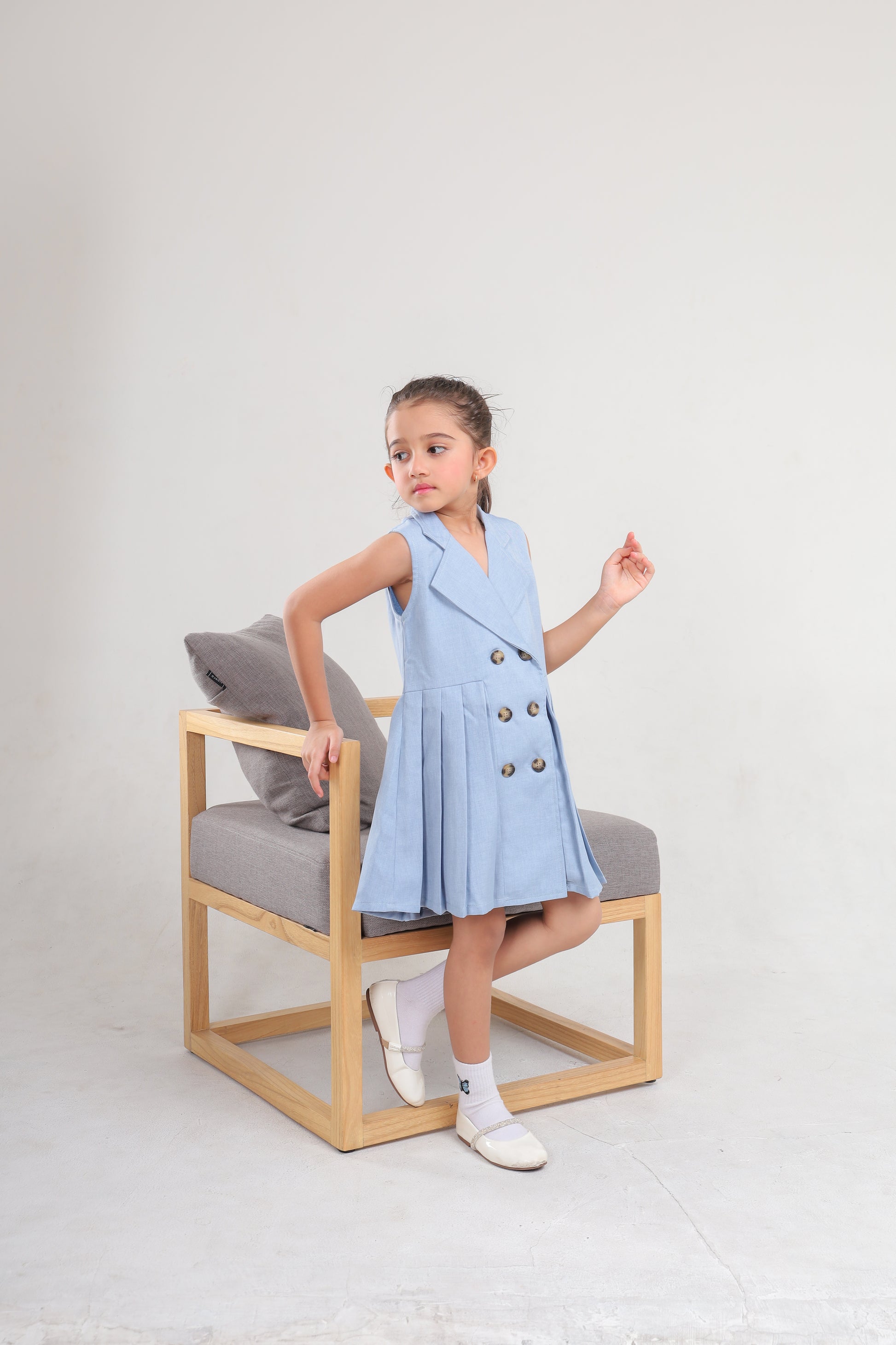 - Dress berwarna sky blue berbahan soft denin yang nyaman digunakan