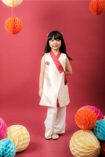 - Dress berwarna pink yang dipadupadankan dengan warna maroon